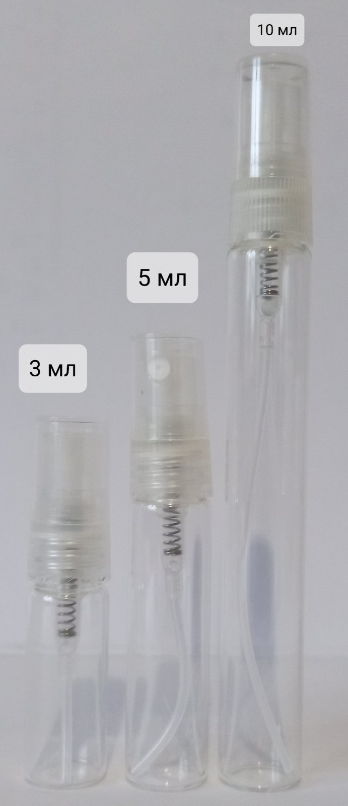 Скляні атомайзери з пластиковим спреєм на 3/5/10 мл - 13/15/18 грн.