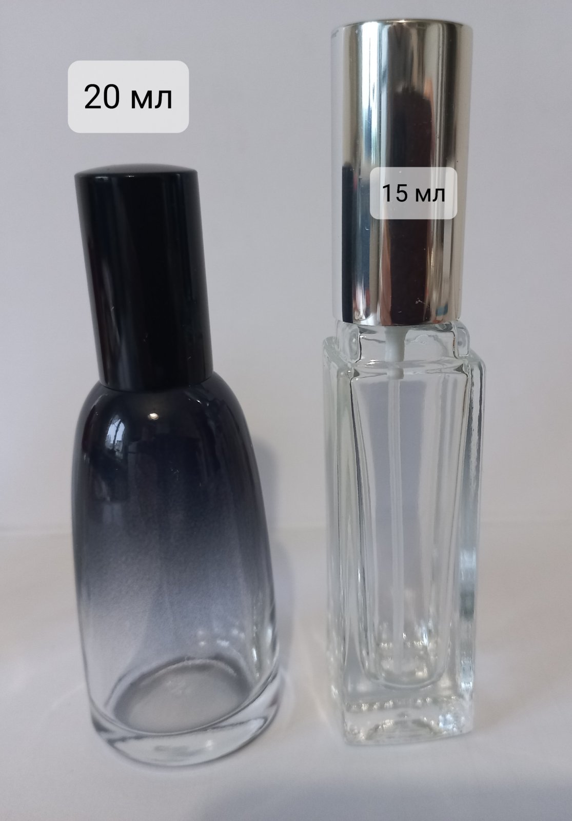 Фігурні скляні флакони з металевим спреєм на 10/15/20 мл - 37/42/48 грн.