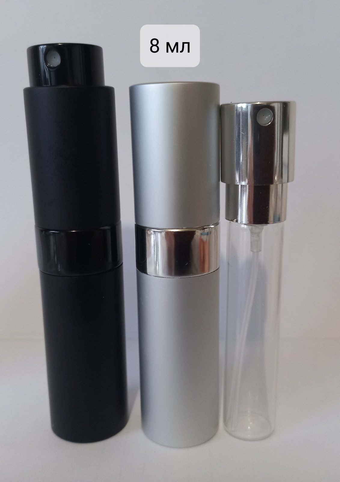 Скляні атомайзери з металевим спреєм в пластиковому кофрі на 8 мл - 65 грн.