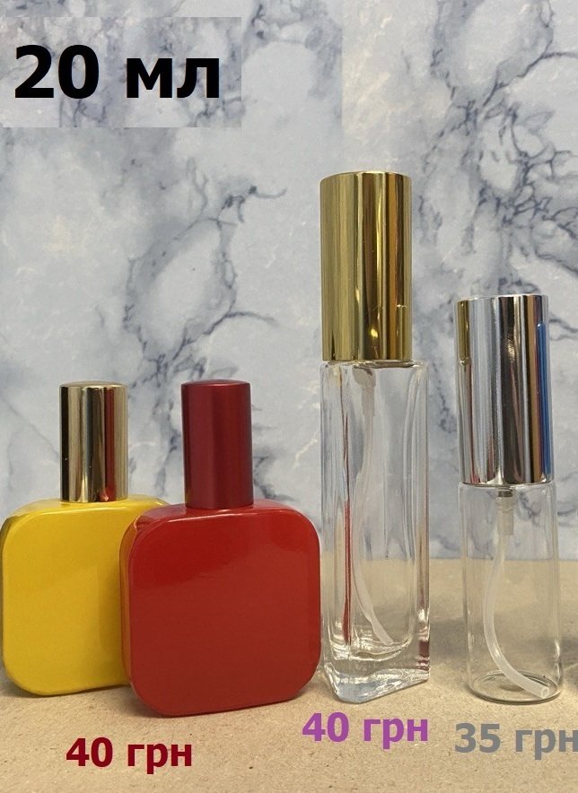 20 мл (скло з метал. спреєм) - від 35 грн, доступні варіанти на фото нижче;