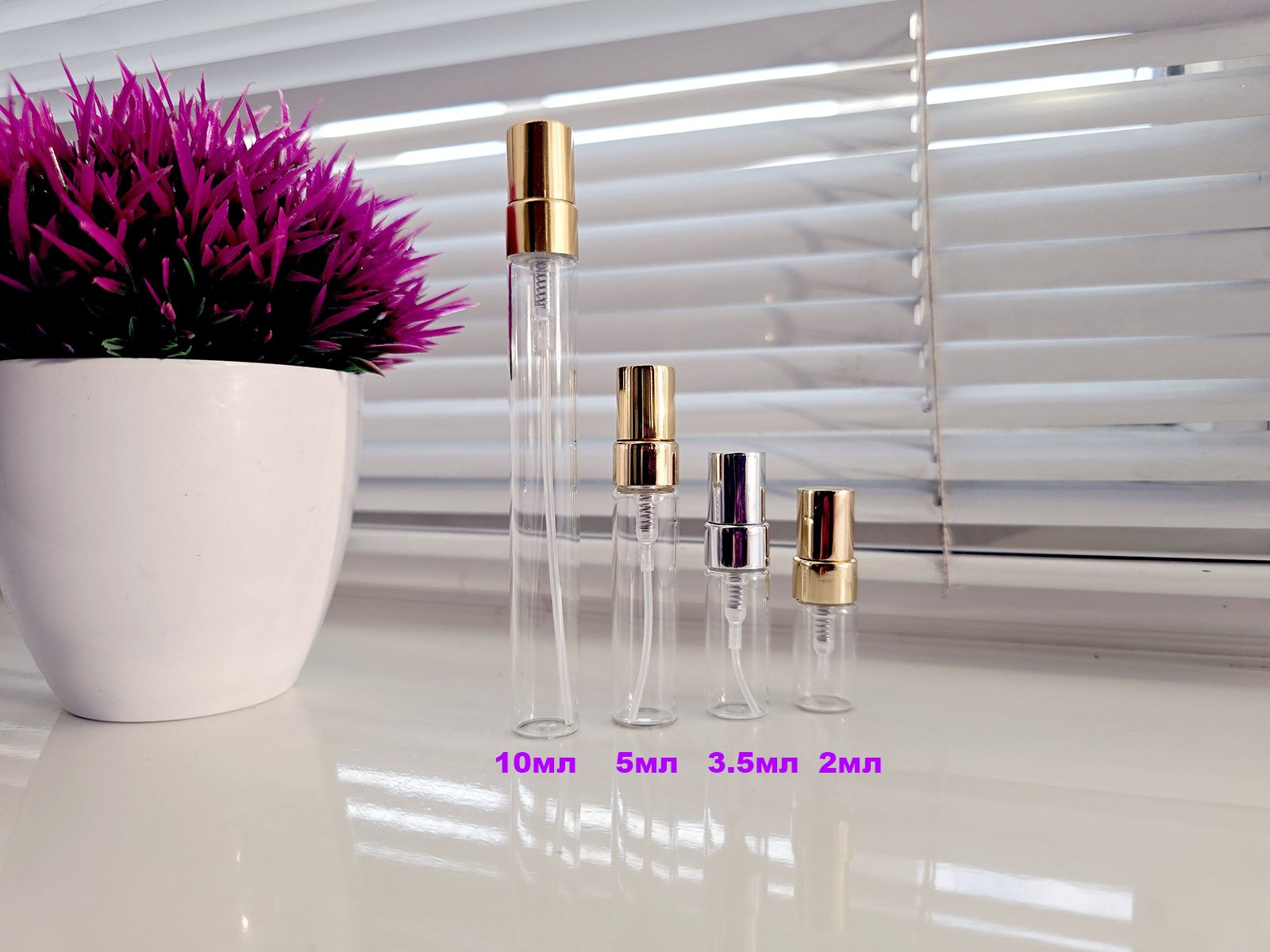 Фіолки скляні з металевим спреєм і кришечкою на 2мл і 3.5мл-20 грн (фіолки на 3.5мл наповнюю тільки по 3мл чітко по мл, тому наповнення буде не до самого горлишка!)