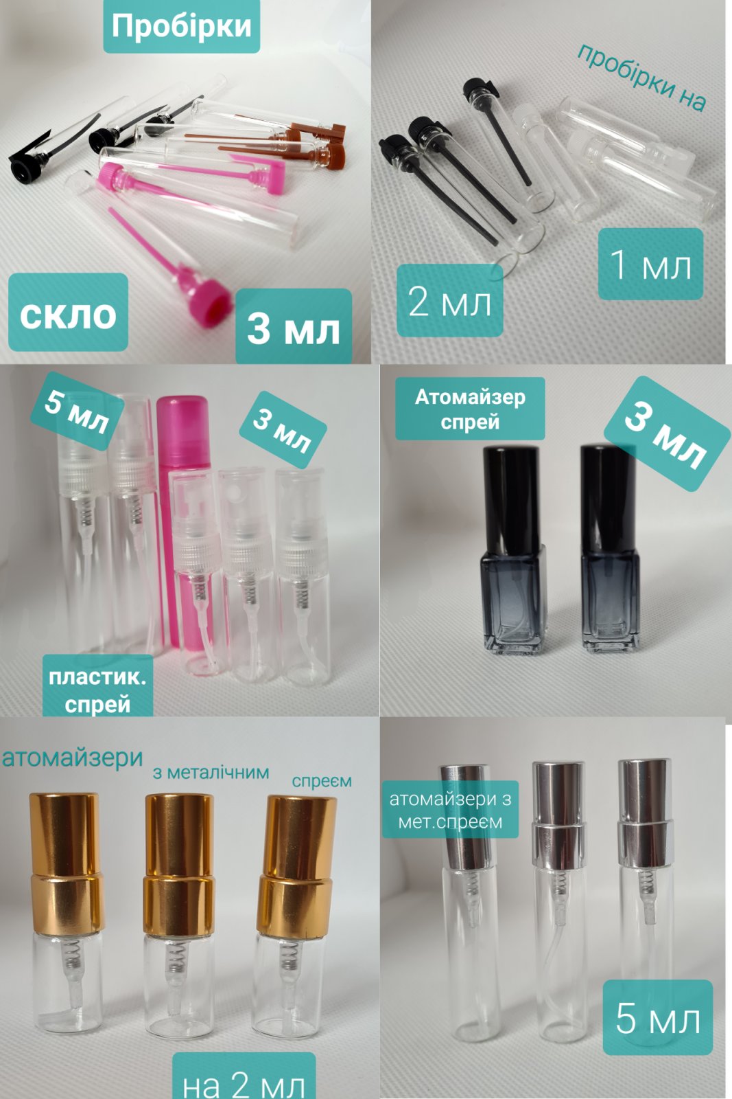 - скляні флакони з металевим спреєм по 3, 5, 9 мл - 25 грн