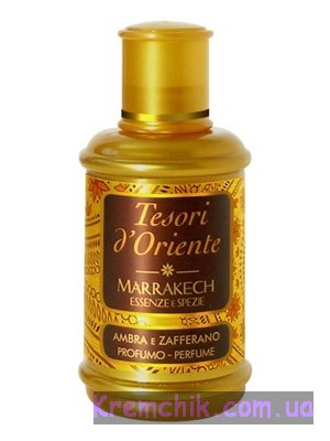 Marrakech Ambra e Zafferano от Tesori d`Oriente — аромат для женщин. Выпущен в продажу в 2011 году. Предназначен для зимы и осени, для дневного времени суток. Сладкий, эффектный парфюм понравится молодым женщинам. Достаточно демократичен: в любой образ внесет капельку чувственности. Обладает хорошей стойкостью и негромким звучанием. Ненавязчив, что позволяет использовать его каждый день. Не вызывает неприязни в офисной обстановке.