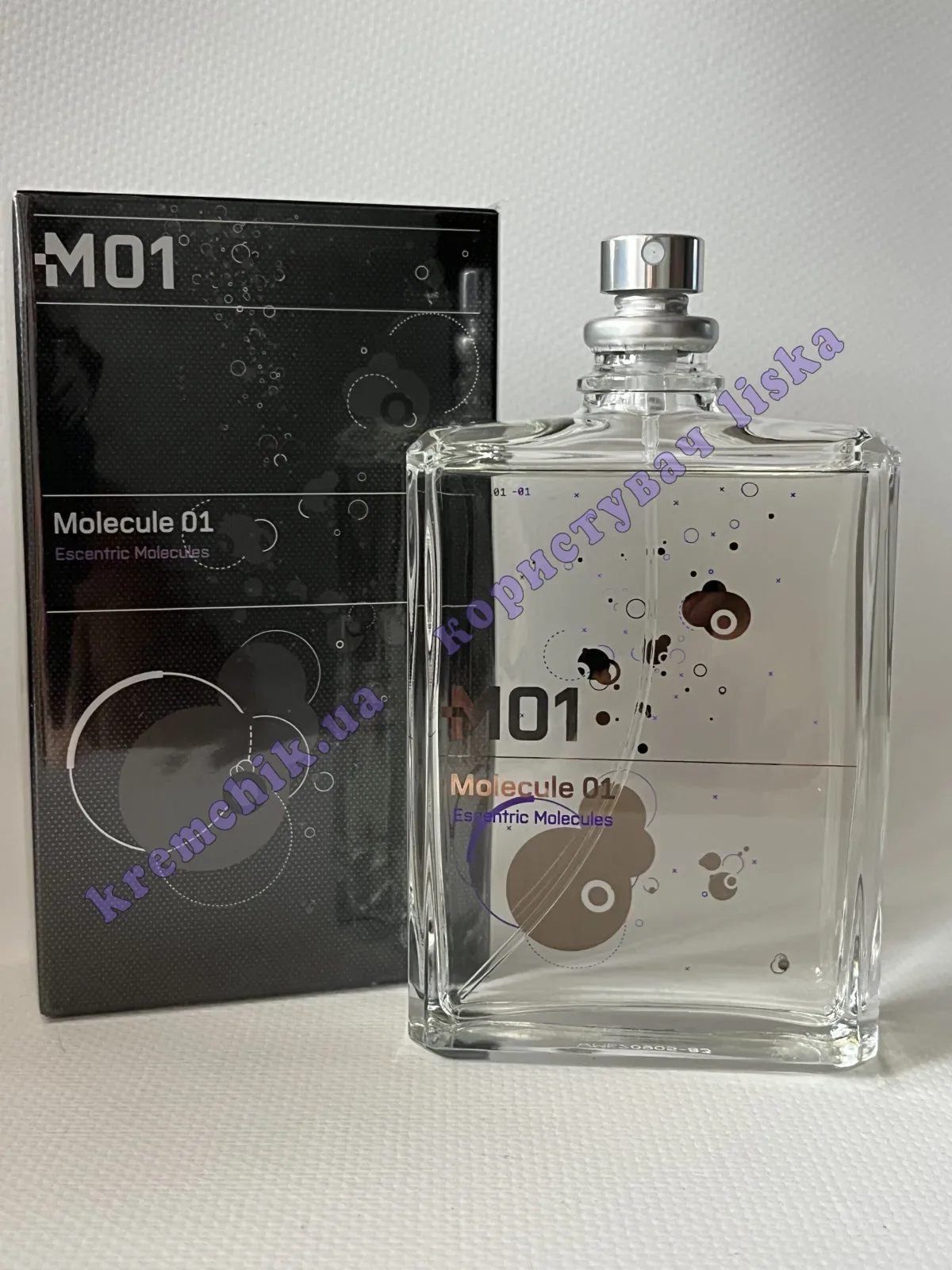 Escentric Molecules Molecule 01 (Эксцентрик Молекула Молекула 01) - "неформатный" аромат, Скорее даже не аромат, а запах, созданный как и Escentric Molecules Escentric 01, синтетическим методом с помощью Iso E Super (ИСО Е Супер), обладающим эффектом феромона.