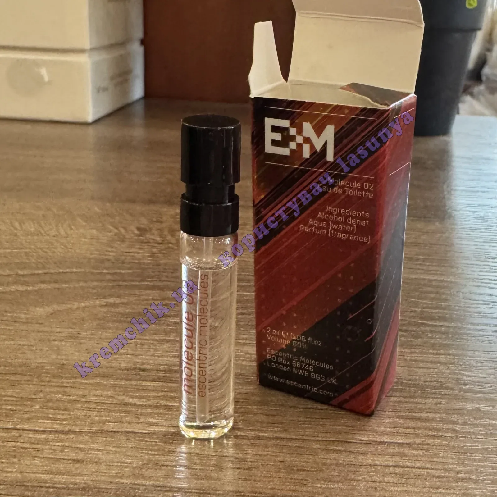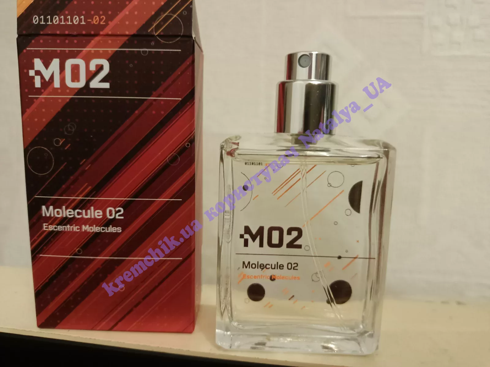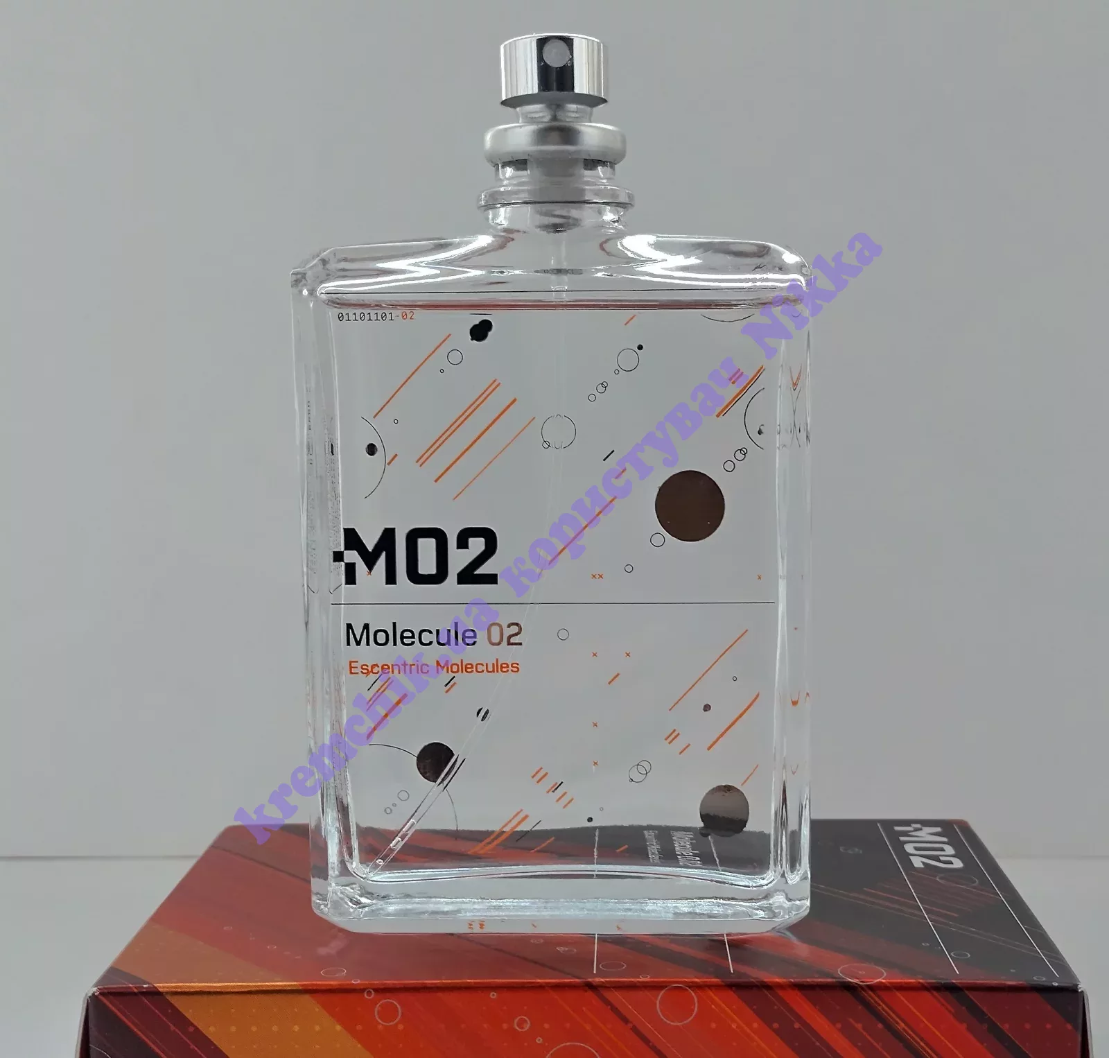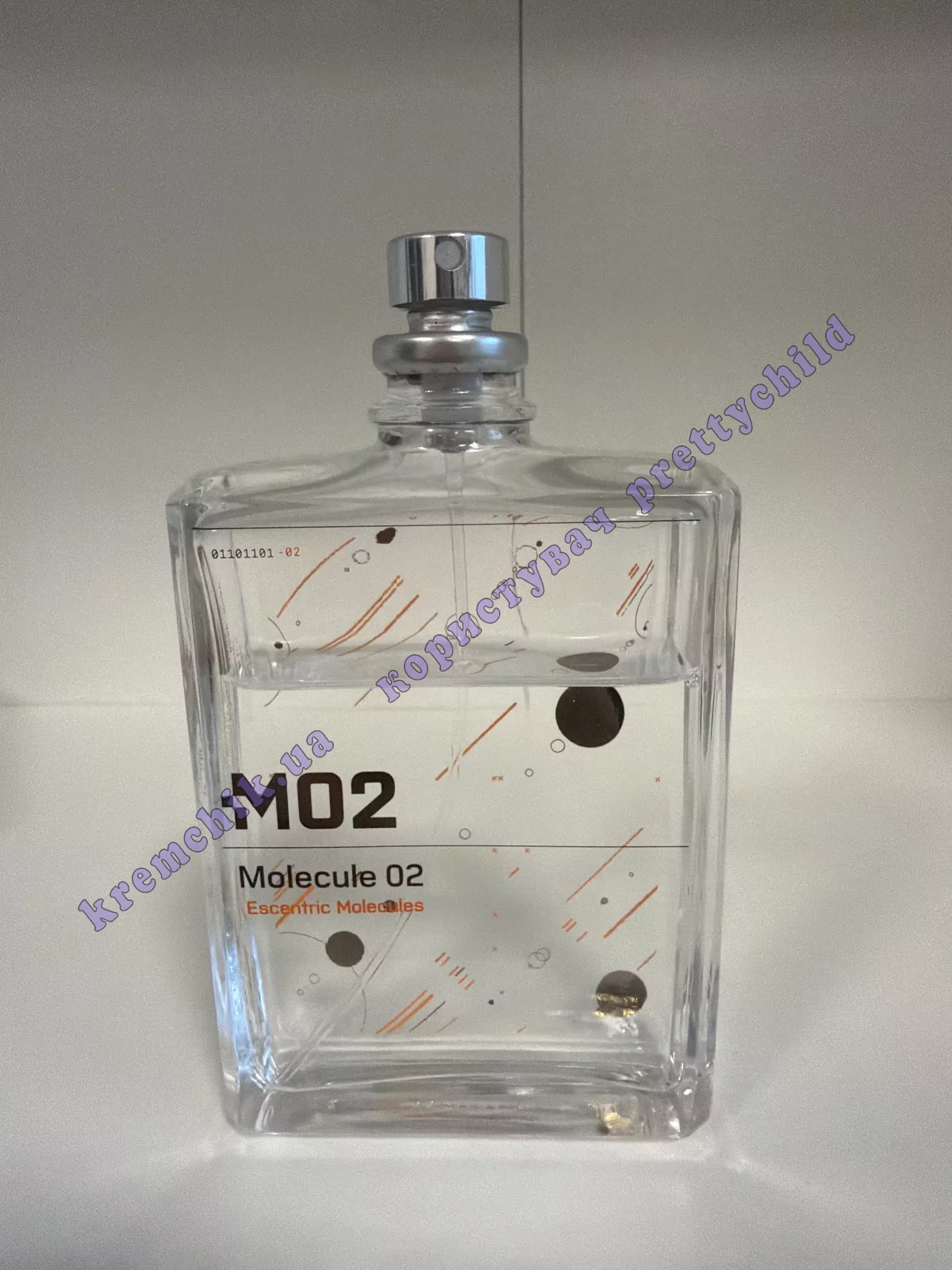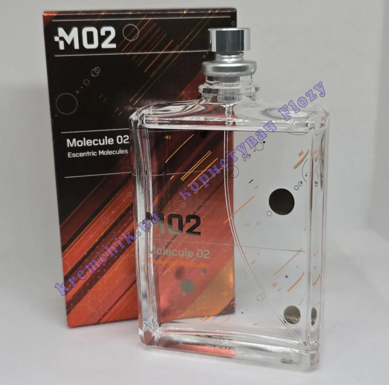 - Escentric Molecules Molecule 02 (Эсцентрик Молекула Молекула 02) - это неуловимая моно-композиция, где, как и в Escentric Molecules Escentric 02, в основе использован амброксан (ambroxan).