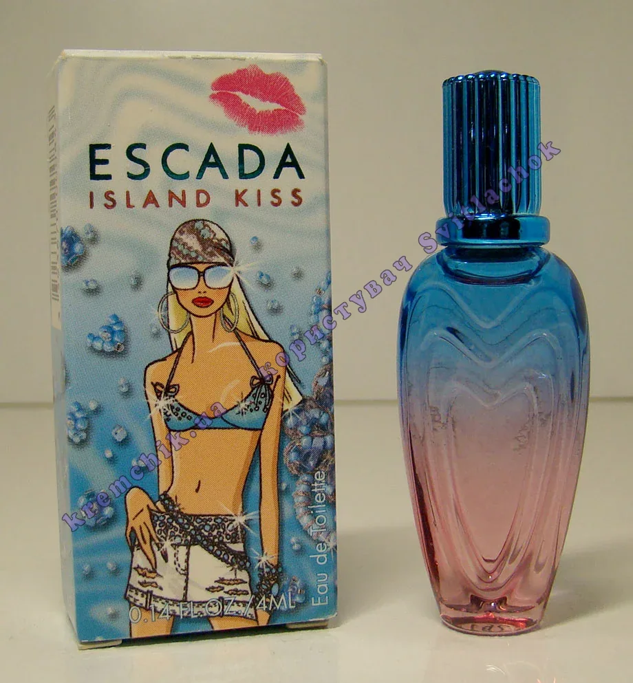 Escada выпустила очередной сезонный аромат Island Kiss. Как и предыдущие ароматы, новинка создана лучшими парфюмерами компании. Фруктово-цветочная парфюмерная композиция раскрывается нотами тропических фруктов, манго открывает дорогу энергии пассифрукта и апельсина, веселый аккорд магнолии и белого персика наполняет его сердце весельем, а освежающая волна кисловатых красных фруктов гармонирует со сладким гибискусом. Динамизм смягчают ноты белого дерева и мускуса, создавая атмосферу неизбежности поцелуя. Лимитированный выпуск.