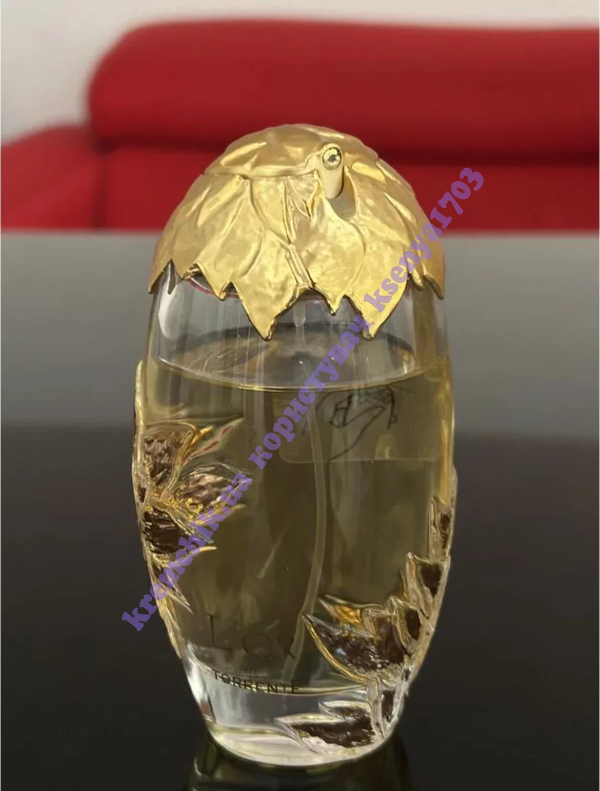 ФОТО на картинке парфюмированной воды с золотыми листьями