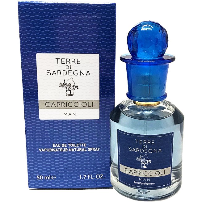 Terre di Sardegna Capriccioli - аромат из серии Beach of Island (Пляжи острова) - голубой, как вода Коста-Смеральды, где находится чудесный пляж Каприччоли (в переводе с галлурского диалекта означает «козлята»), утопающий в пышной средиземноморской растительности, пестрящий цветами ладанника, вечнозелёными соснами, мастиковыми и оливковыми деревьями. Пляж, расположенный на небольшом мысе, состоит из 4 небольших бухт, соединенных лесными тропинками. Многочисленные небольшие скалы, разделяющие мыс, и есть «козлята», подарившие пляжу название.