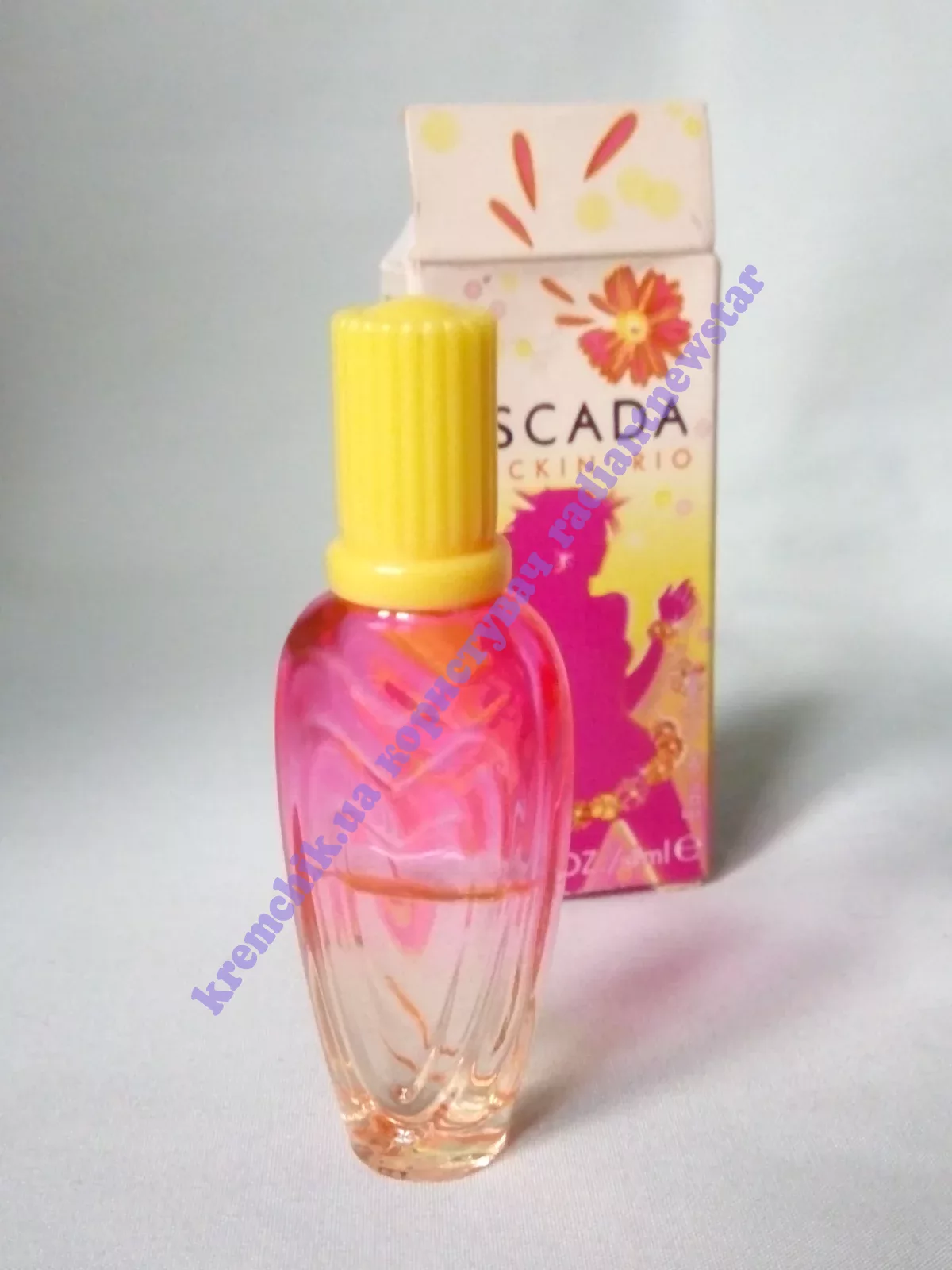 упаковка: традиционный флакон Escada в форме сердца выполнен в розово-желтых тонах