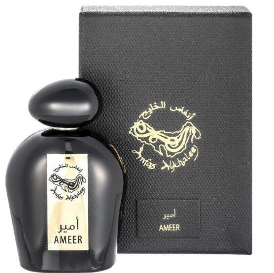 Anfas Alkhaleej Ameer — красивый, волнующи и обволакивающий восточный унисекс-аромат, выпущенный арабским нишевым парфюмерным брендом Anfas Alkhaleej. Созданный из ингредиентов высочайшего качества, парфюм отличается исключительной яркостью и длительностью звучания. Стильный угольно-черный флакон с золотистой отделкой идеально отражает роскошь и особую энергетику заключенного в нем парфюма.