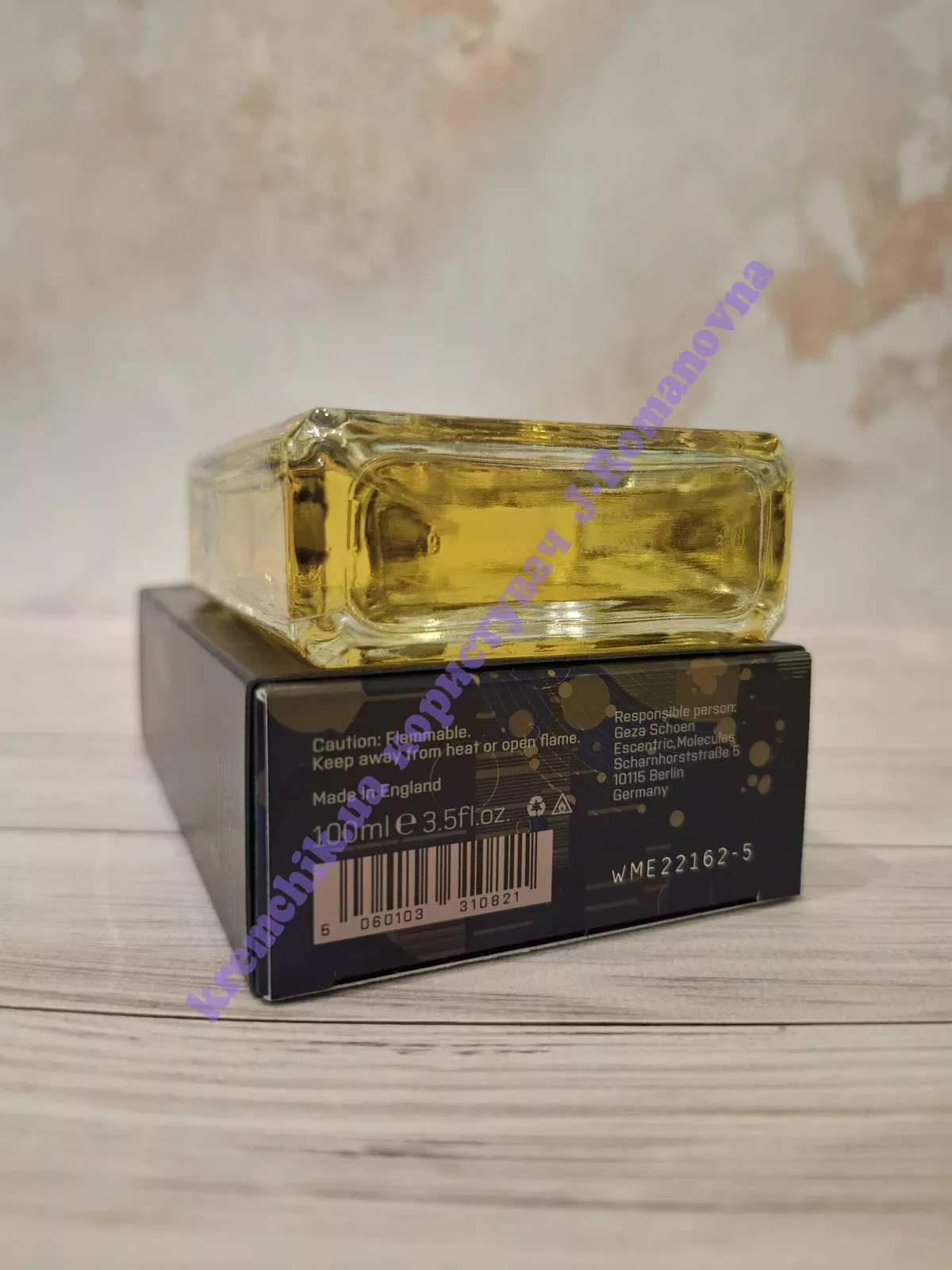 - Композиция включает в себя молекулу Iso E Super и ноты черного чая.