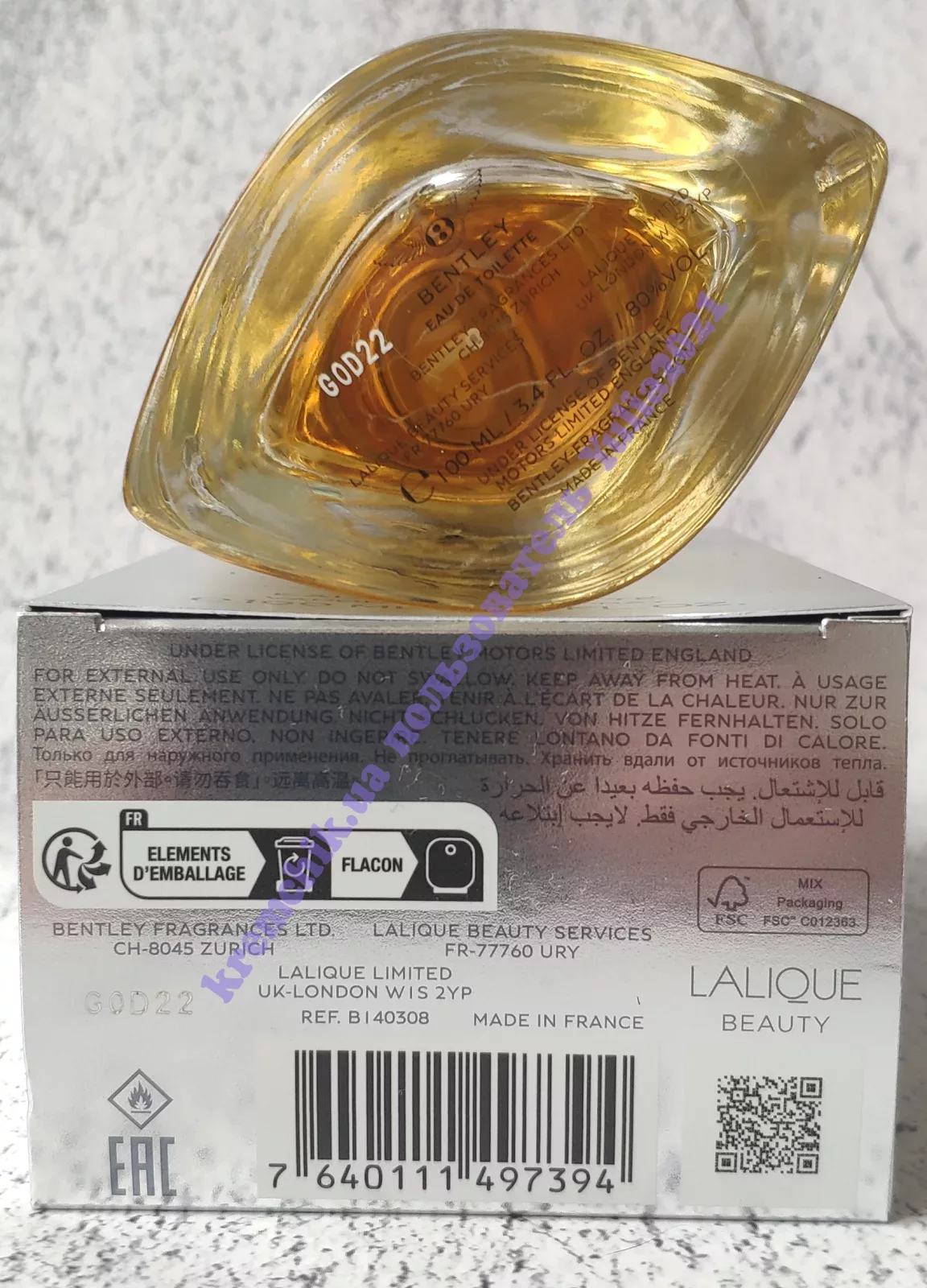 Британский бренд роскошных автомобилей Bentley создал свои первые ароматы для мужчин под названием Bentley for Men, Lalique for Bentley Crystal Edition и Bentley for Men Intense. Все парфюмы созданы в сотрудничестве с домом Lalique и отличаются выраженными нотами кожи и древесными аккордами, которые символизируют собой внутренний интерьер салона автомобиля дома Bentley. Создателем ароматов Bentley for Men стала парфюмер Натали Лорсон (Nathalie Lorson) из компании Firmenich. Композиция аромата Bentley for Men открывается аккордами черного перца, лаврового листа и бергамота, которые постепенно сменяются сердечными нотами кожи, рома, корицы и мускатного шалфея, завершаясь базовыми ароматами бензоина, мускуса, кедра и листьев пачули.