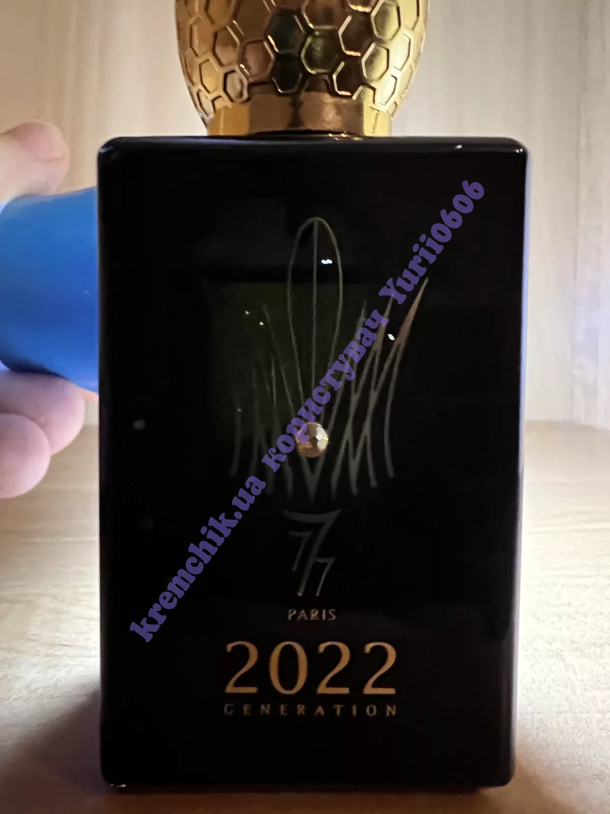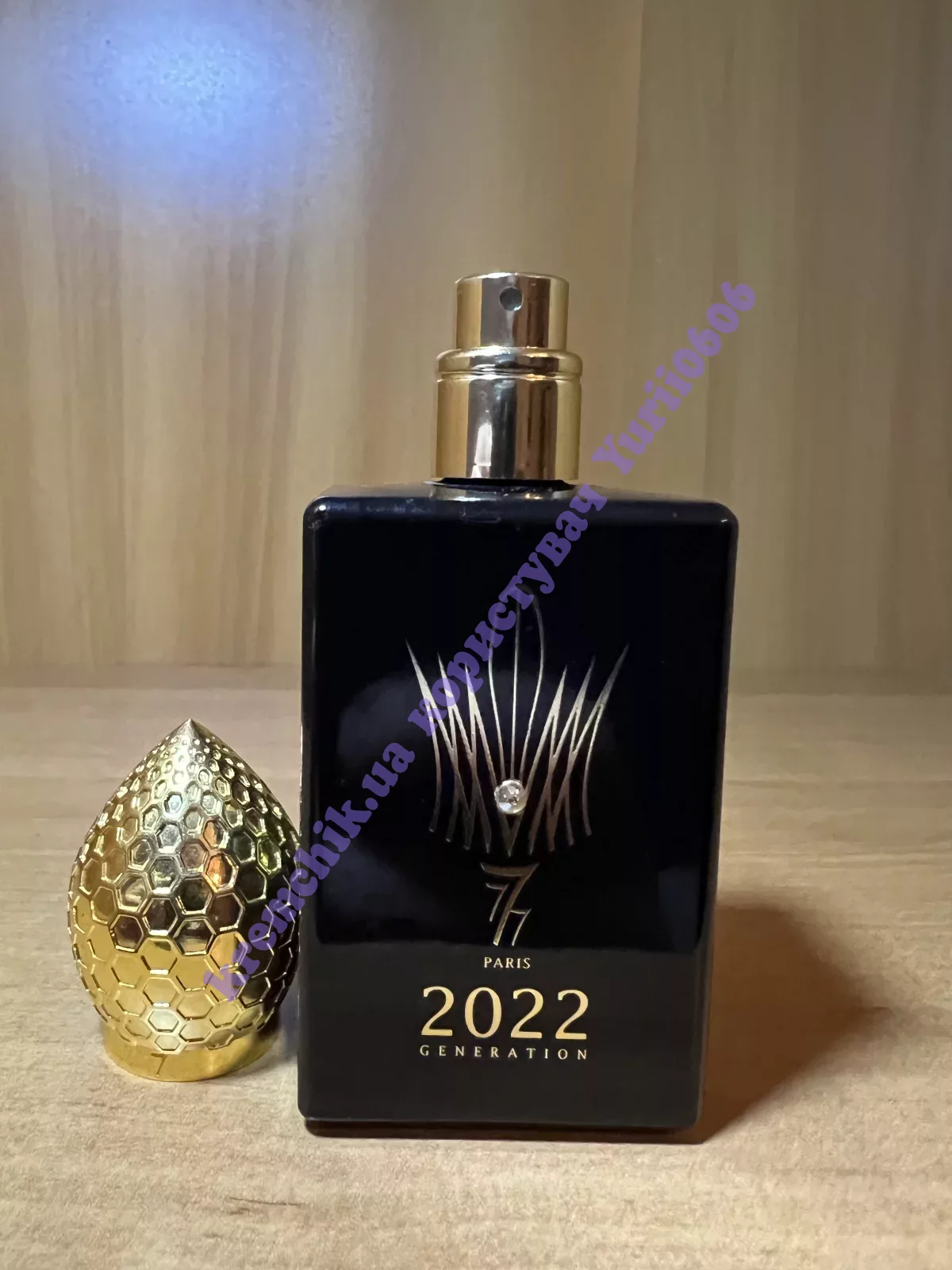 Парфюм представлен в лаконичном блестящем, лакированном флаконе черного цвета, на теле которого красуется золотой логотип парфюмерного дома. Золотая крышечка и мерцающая гранями персикового цвета и кристаллами Сваровски, являет собой стилизованную корону. Священные три семерки, принесут обладателю парфюма 2022 Generation Homme духовность, защиту и удачу.