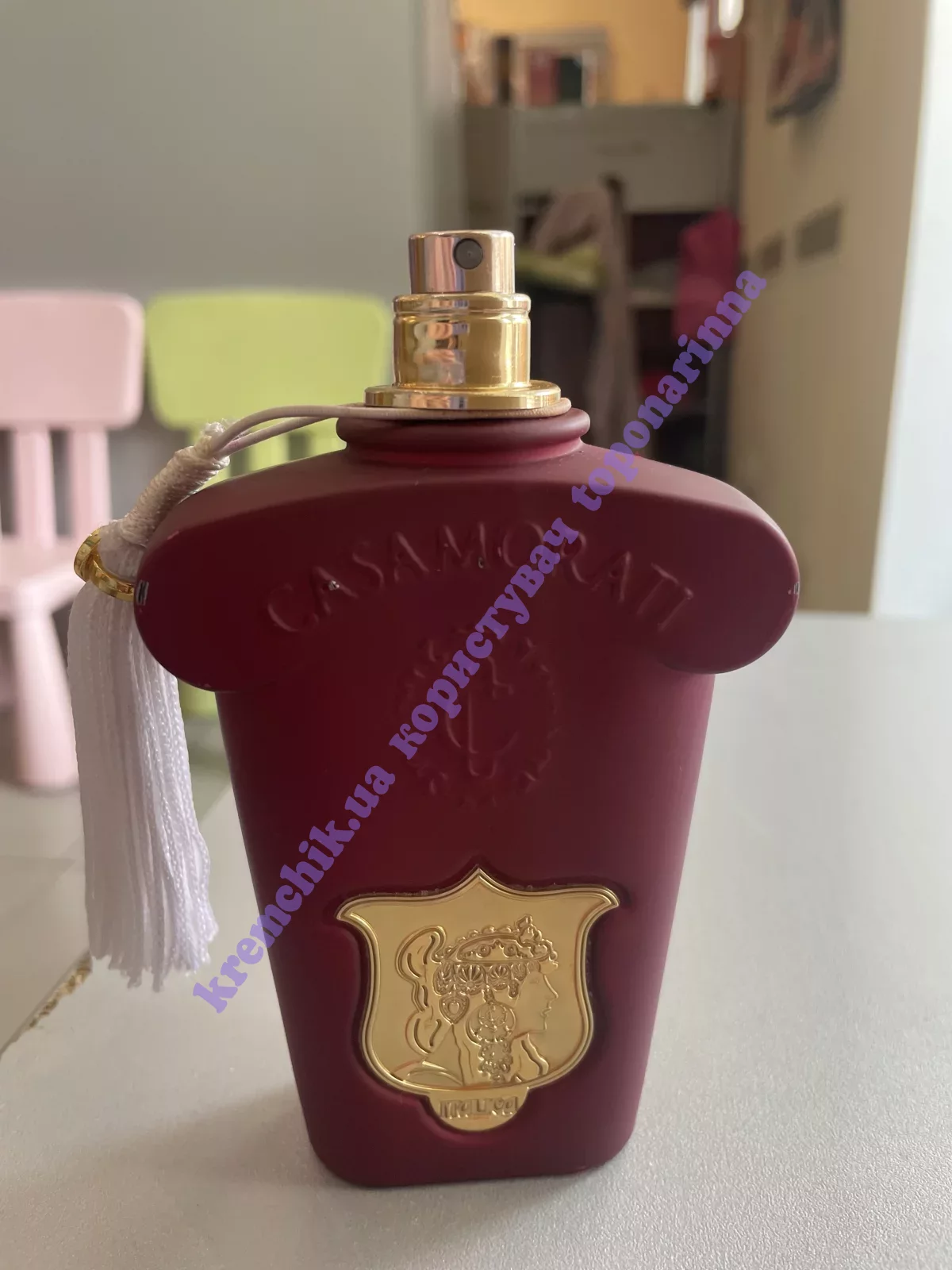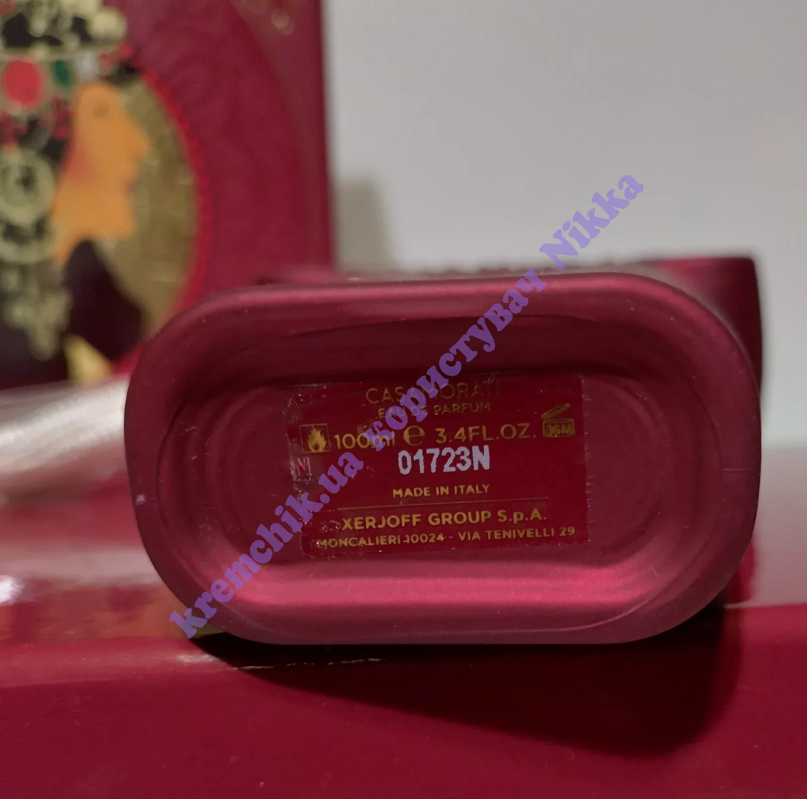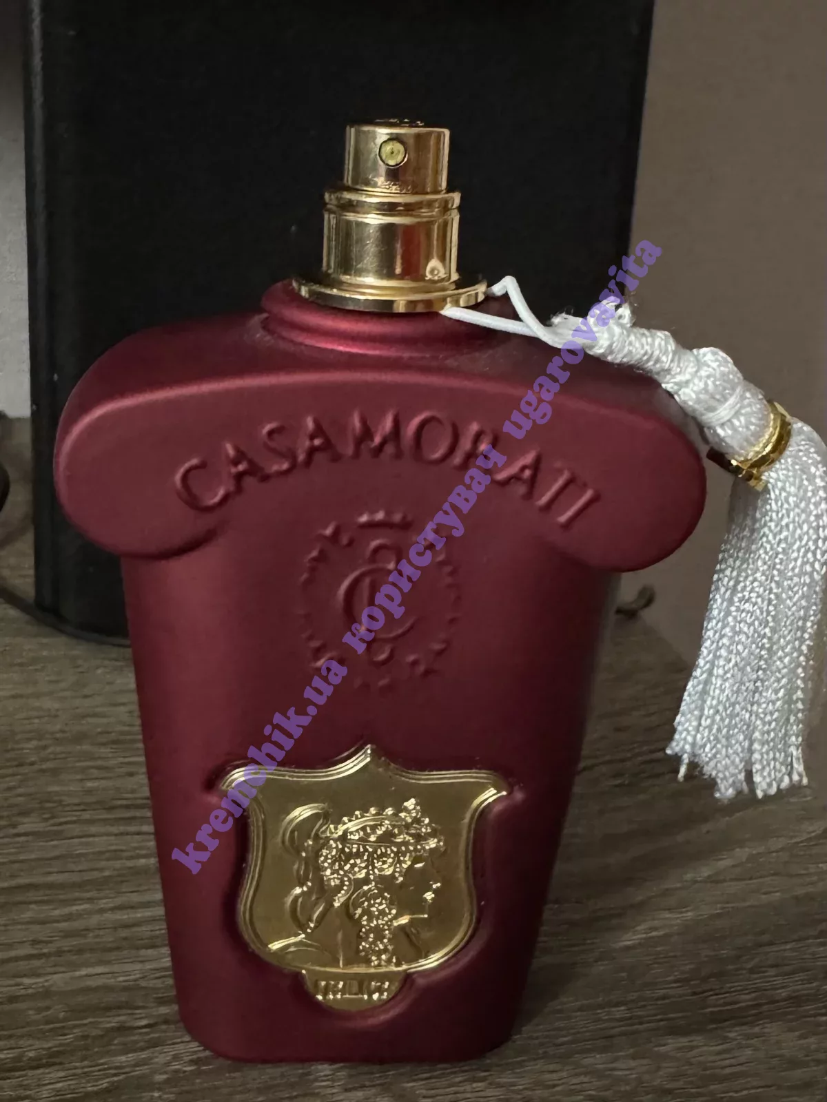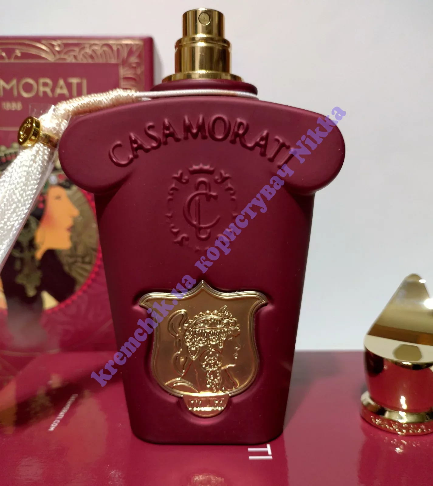 Шикарный флакон малиново-красного оттенка, украшенный золотистой крышкой и гербом, делает произведение дорогим подарком человеку, обожающему наслаждения и умеющего ценить все проявления красоты, роскоши и комфорта.