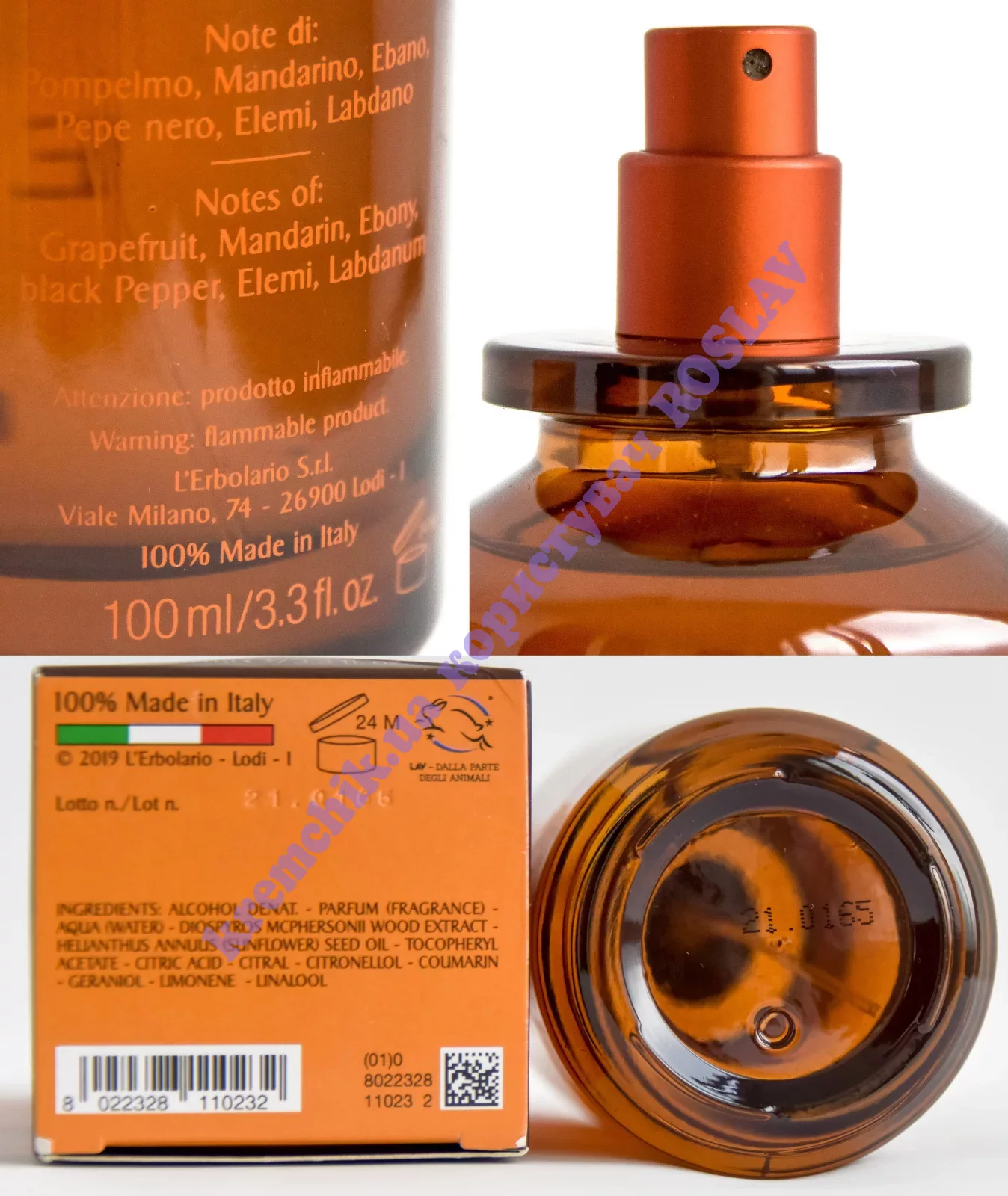 - Верхние ноты: мандарин, грейпфрут