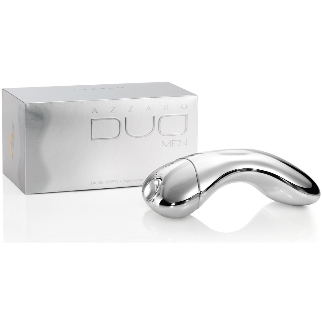 Azzaro Duo Men состоит из зеленых нот грейпфрута, ягод можжевельника и гальбанума, в сочетании с пьянящими древесными аккордами ветивера, бобов тонка и мускуса. Флаконы в оттенках желтого и белого золота, которое символизирует мистическое притяжение двух половинок. Скрученные, удлиненные и изогнутые, они словно слились в горячем поцелуе.