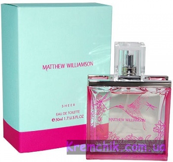 Женский цветочный аромат Matthew Williamson Sheer создан парфюмером Клементом Гаварри для британского модного дома Matthew Williamson в 2007 году. Этот чудесный, легкий, умиротворяющий, свежий, соблазнительный, очень нежный, деликатный, густой, в меру сладкий, немного фруктовый, чуть припудренный цветочный парфюм с тонкими нотами сандала и цитрусов от Matthew Williamson предназначен для зрелых молодых женщин, он подчеркивает элегантность и индивидуальный стиль своей обладательницы. В букет композиции Matthew Williamson Sheer входит бергамот, имбирь, липовый цвет, зеленый чай, жасмин, ландыш, лилия, магнолия, амбра, бензоин, сандаловое дерево и мускус. Аромат можно носить и днем, и в качестве вечернего парфюма, лучше всего раскрывается в летнее время года.