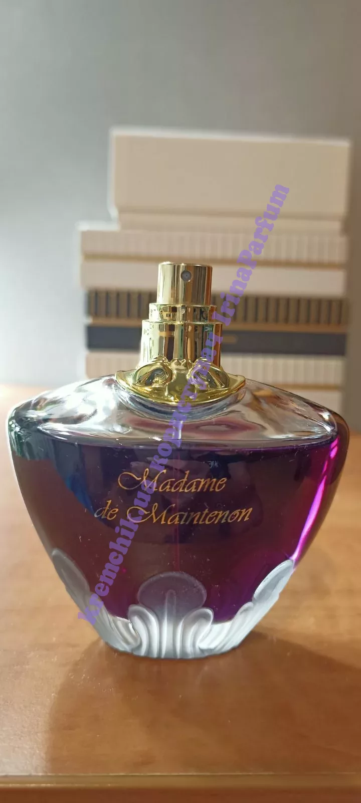 Parfums du Chateau de Versailles Madame de Maintenon - строгая и умная женщина, вначале она была для короля просто другом, но в последствии их отношения переросли в роман. Они прожили вместе до самой смерти Людовика XIV. Аромат характеризуется как сложный, элегантный, чувственный и страстный парфюм, который обладает роскошным и таинственным звучанием. Флакон аромата окрашен в темные пурпурно-фиолетовые оттенки.