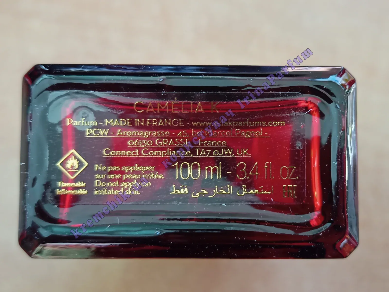 "Мой взгляд остановился на дикой красной камелии с ее алыми лепестками, я была поражена... Чтобы подчеркнуть этот цветочный, влажный букет, я соединила его с сиянием бергамота и с чистыми свежими гранями. Кроме того, сладость ванили и бобов тонка придает этому цветочному аромату чувственный эффект».