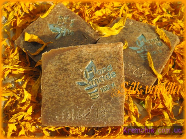 Шампуневое мыло для укрепления и роста поврежденных волос сделано холодным способом на молочной сыворотке с добавлением гидролатов хмеля, хвоща и шалфея (см.). Молочная сыворотка для волос пришла к нам из древности и на протяжении многих веков помогает людям укреплять волосы, делая их сильными и блестящими. В ней содержатся полезные аминокислоты, витамины, бета-каротин, а также различные микроэлементы. И весь этот комплекс позволяет укрепить луковички волос и улучшить их рост. В корнях волос нормализуется процесс обмена веществ, что придает волосам силу. А сильные волосы не страдают проблемой выпадения. Также сыворотка обеспечивает уменьшение жирности волос и придает им пышность. Мыло содержит большое количество протеинов шелка, которые наполняют волосы блеском, повышают их эластичность и упругость. Создавая вокруг волоса невидимую мембрану, протеины защищают его структуру от повреждений, удерживают влагу, предупреждая появление секущихся кончиков, ломкость и ослабление волос. Яичный желток для волос очень полезен. Он содержит множество полезных веществ (витамины А, В2, В3, В6, В12, D, Е, фосфор, магний, калий, биотин, лецитин, аминокислоты) и способствует укреплению волос, питает их, придает блеск и эластичность, а также предотвращает выпадение и появление перхоти. Голубая глина является прекрасным средством для восстановления структуры волос. Химический состав голубой глины активизирует клетки волосистой части головы, подкожная клетчатка обогащается микроэлементами, мышцы головы и волосы укрепляются, улучшается рост волос, которые становятся более гибкими и блестящими. Марокканская глина рассул прекрасно очищает даже очень жирные кожу и волосы, но совсем не сушит их. После его смывания волосы остаются гладкими и шелковистыми. Появляется ощущение кондиционирующего эффекта. Рассул очень хорош при выпадении, повышенной жирности кожи головы (и лица), перхоти, чувствительности. Применяется как детоксицирующее средство и восстанавливающее средство. Подходит даже для очень чувствительной и аллергичной кожи. Д-пантенол обеспечивает длительное увлажнение, борется с секущимися кончиками, предупреждает повреждение волос, в т.ч. при мытье и расчесывании, горячей сушке и укладке, утолщает волосы, придает сияние и блеск, облегчает укладку волос. Витамин F - витамин молодости - обеспечивает здоровое состояние кожи и волос, способствует сохранению гидро-липидного баланса кожи и волос, что делает его эффективным компонентом при лечении себореи кожи головы и угревой сыпи. Сверхкритический СО2-экстракт расторопши оказывает стойкий положительный эффект на состояние волос, укрепляет их, способствует росту и придает красивый естественный блеск. Кератин проникает глубоко внутрь волос и восстанавливает их на молекулярном уровне, сглаживает чешуйки, заполняет неровности, придает волосам жизненную силу и блеск. Мед является уникальным питательным средством абсолютно для всех типов волос, восстанавливая их природную структуру, укрепляя и наполняя их здоровым блеском. А особенно рекомендован для тех, у кого тонкие и секущиеся волосы. Ухаживающие добавки: Маковое масло очень хорошо влияет на состояние волос. Питает, увлажняет волосы и кожу головы, приглаживает чешуйки волоса, временно склеивает рассеченные кончики волос, оказывает к