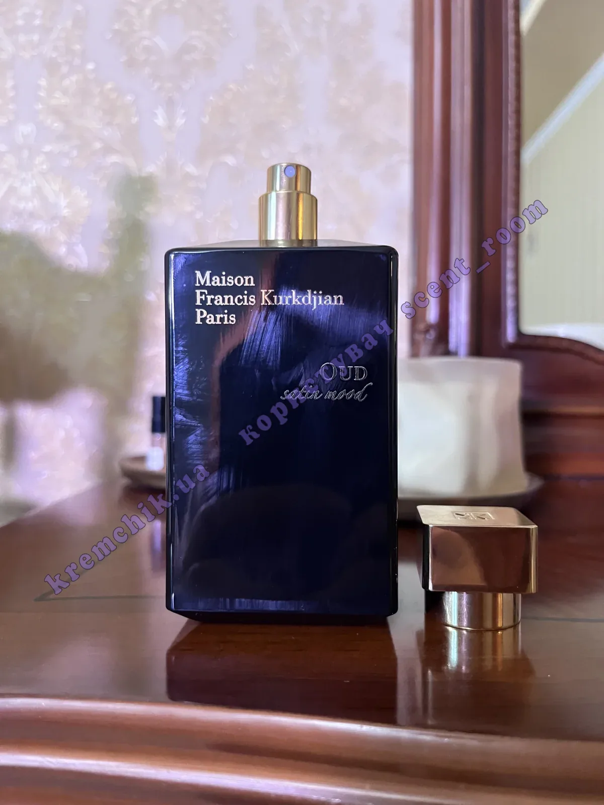 Название парфюма переводится, как «Уд, сатин, настроение», и сама ароматическая композиция полностью укладывается в девиз Фрэнсиса Куркджяна «Духи - это произведение искусства, выражающее ощущение интимности».