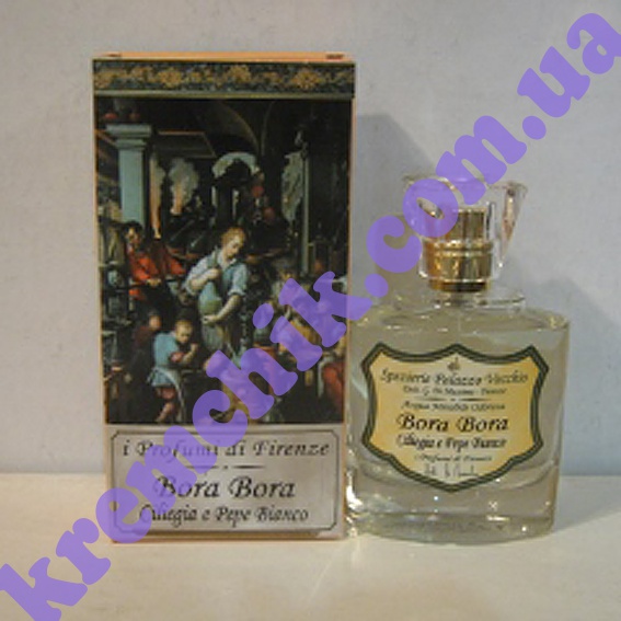 I Profumi di Firenze Bora Bora Ciliegia E Pepe Bianco создан как воспоминание о лете. Композиция с гурманскими оттенками построена на сочетании цветочных, древесных и пряных нот с теплым амбровым акцентом.
