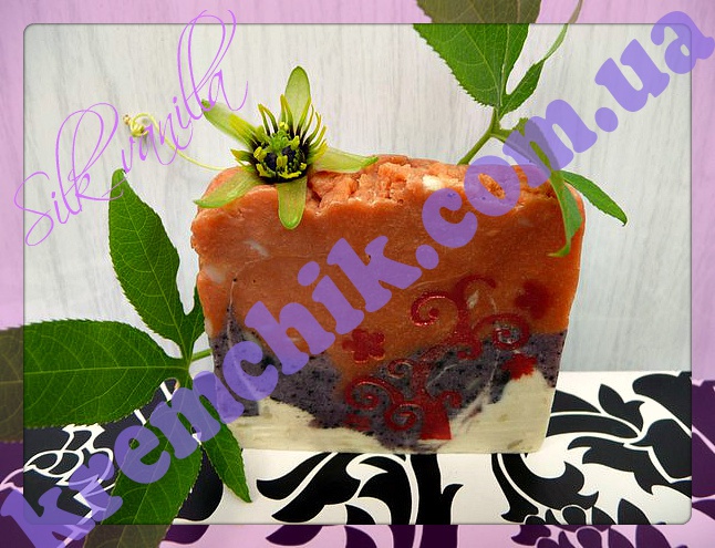 Очищающее увлажняющее мыло с омолаживающим эффектом сделано горячим способом на гидролате маракуйи с добавлением белой, розовой и фиолетовой глин и жмыха черного тмина. Это мыло призвано глубоко очистить поры, сузить их, придать коже свежий и здоровый вид. Мыло подойдет для любого типа кожи. Белая глина хорошо стягивает поры, с её помощью можно устранить угревую сыпь и даже выровнять овал лица. Также белая глина рекомендована для зрелой и увядающей кожи, ведь она стимулирует обновление клеток. Кроме того белая глина имеет еще и легкий отбеливающий эффект. Розовая глина самая мягкая из всех цветных глин, она подходит даже для сухой и чувствительной кожи, оказывает антисептический и омолаживающий эффект. Разглаживает мелкие морщинки, подтягивает контур лица, смягчает, питает и придает коже эластичности. Фиолетовая глина подойдет для любого типа кожи. Особенно хорошо она себя зарекомендовала в уходе за нежной кожей, склонной к потрясению, нежно и бережно очищает чувствительную и зрелую кожу, оживит усталую, увядающую. Жмых черного тмина- продукт, который получают после прессования холодным способом и получением масла. Придает свежесть и здоровый вид коже, витаминное обогащение, регенерирует и омолаживает. Мыло обогащено: Масло авокадо особенно подходит для сухой и чувствительной кожи. Оказывает питающее, витаминизирующее, смягчающее, увлажняющее действие. Масло абрикосовой косточки обладает регенерирующими и противовоспалительными свойствами, повышает упругость и тонус кожи, придает коже здоровый красивый цвет, разглаживает мелкие морщинки, способствует восстановлению упругости и эластичности кожи. Масло кунжута рекомендуется для ухода сухой, огрубевшей, увядающей и дряблой кожей лица. Оно обладает хорошим питательным, увлажняющим, и смягчающим свойством, предотвращает сухость кожи, устраняет ее шелушение, предупреждает появление первых признаков старения (морщины, вялость, отвисание, снижение тонуса и упругости кожи). Состав: натриевые соли жирных кислот масел оливкового, пальмового, кокосового, пальмоядрового, клещевины, воск пчелиный, гидролат маракуйи. Ухаживающие добавки: масло авокадо, абрикосовых косточек, кунжута. Активные добавки: белая, розовая и фиолетовая глины, жмых черного тмина. Дополнительные добавки: гипоаллергенное парфюмированное масло Пассифлора (США).