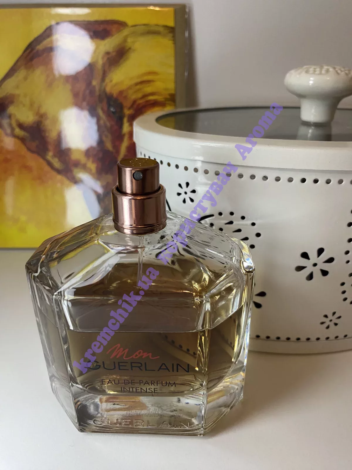 Аромат Mon Guerlain узнаваем по сочетанию лаванды и ванили (бобов тонка). В новой версии Eau de Parfum Intense внимание уделено базовым аккодам, в которых стала заметна роль пачули, усилены ваниль и сандал.