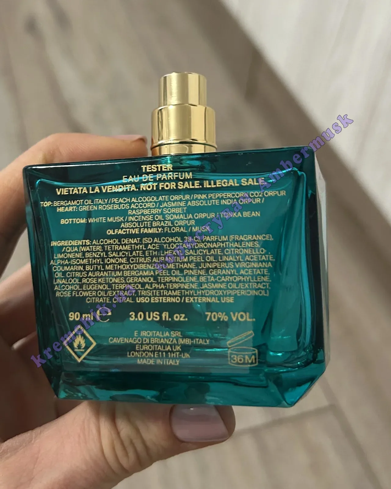 - Базовые ноты: Белый Мускус, Бобы Тонка и Ладан.