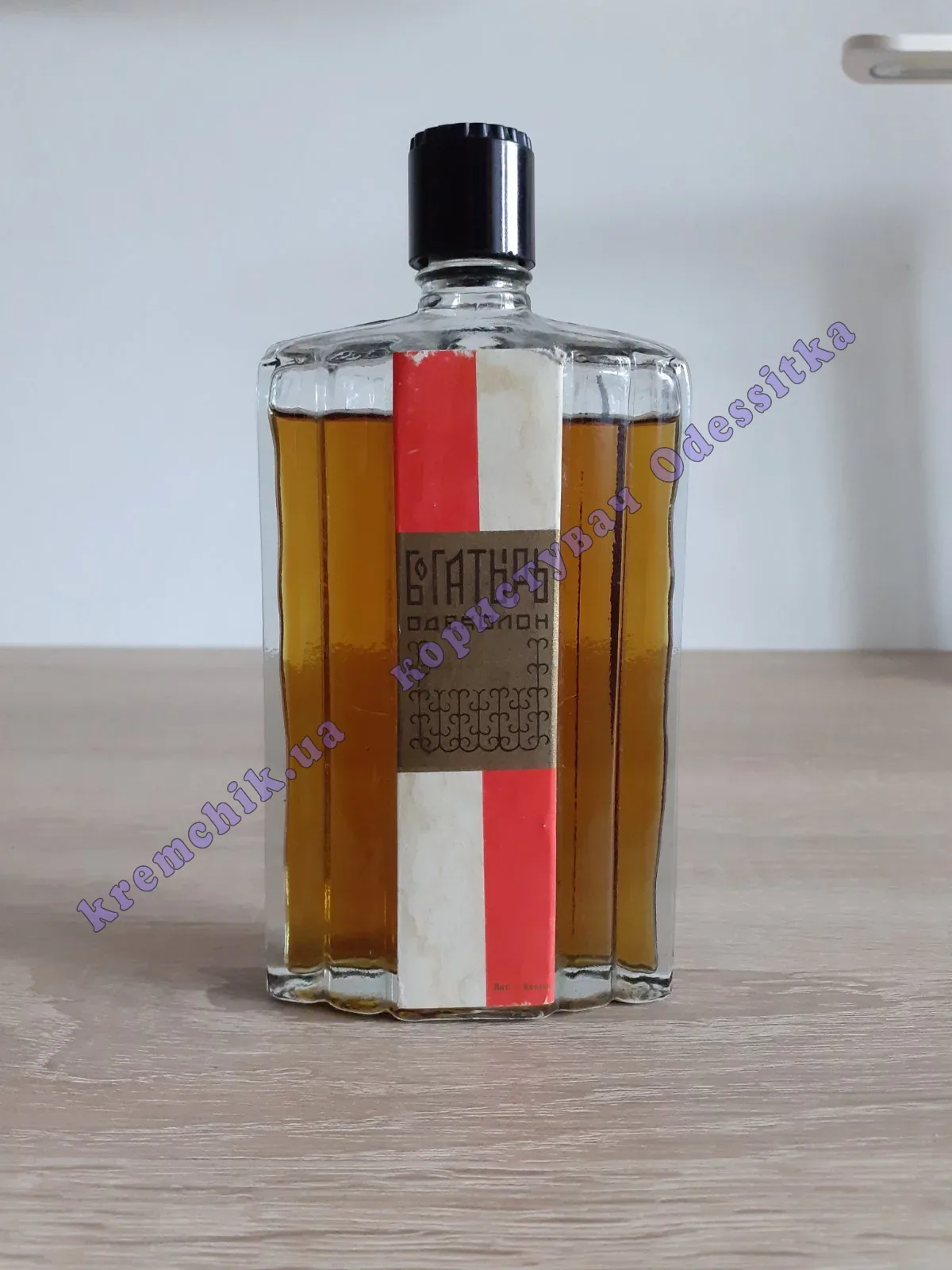 Одеколон Богатырь анонсался в 70-80-е года XX века на парфюмерно-косметической фабрике Алые Паруса (г. Николаев)