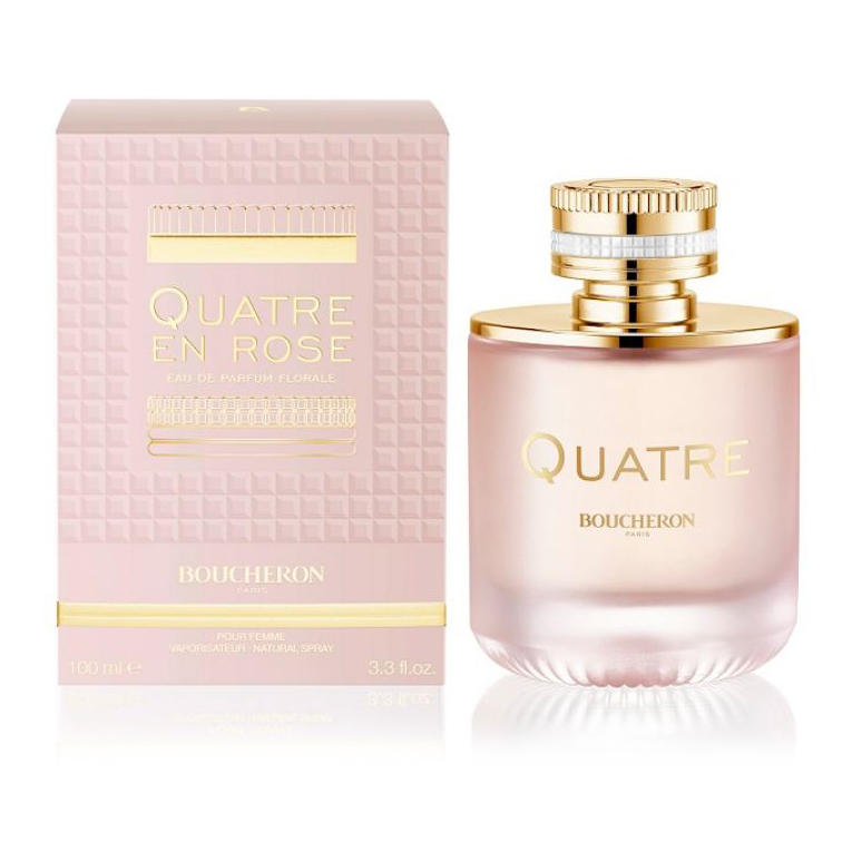 Boucheron Quatre En Rose доступен в объеме флаконов 30, 50 и 100 мл в концентрации Eau de Parfum.