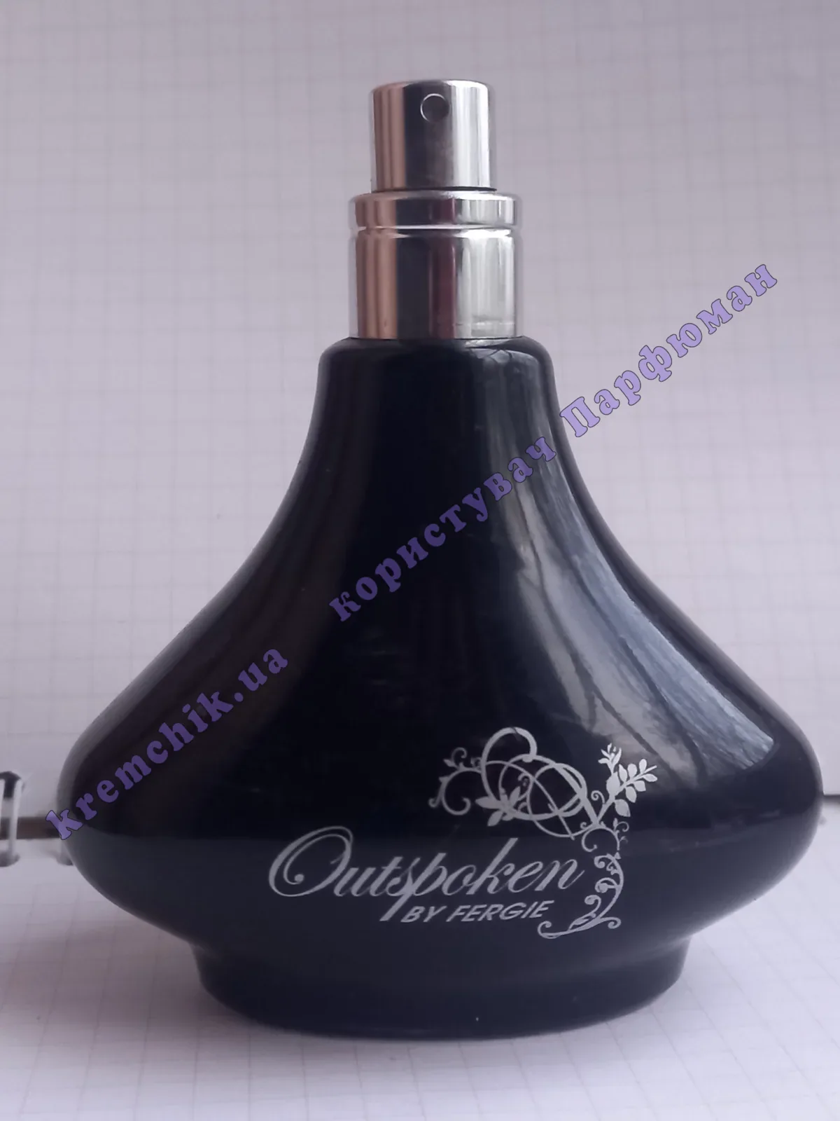 Парфюмированная вода очень контрастирует с нежным прикасанием края ударных чувств. Пьянящий и чувственный, откровенно сочетает в себе правдивость чувств независимости, уверенности и женственности. Вдохновение для создания флакона парфюма откровенно пришло от свадьбы Fergie: он напоминает красивый хрустальный графин и создателю захотелось чтобы классический элегантный дизайн был отражен и в аромате Outspokenby Fergie for Avon. Верхнюю часть граненого алмаза дополняет соблазнительный фиолетовый оттенок изогнутой стеклянной бутылки, вместе это символизирует уверенность аромата и чувство женственности.