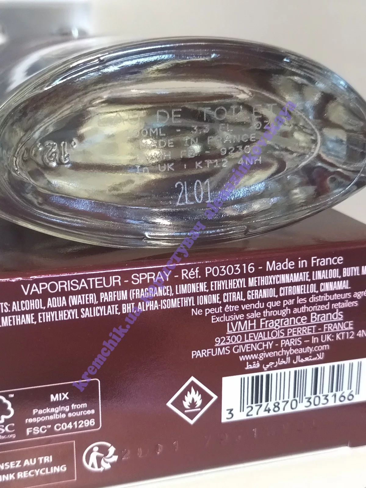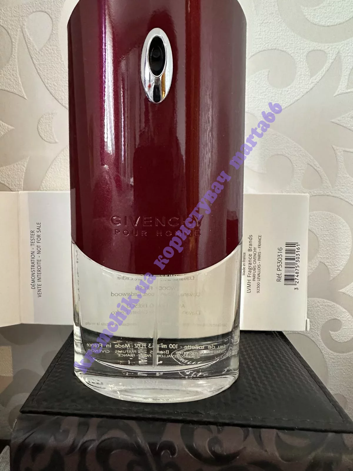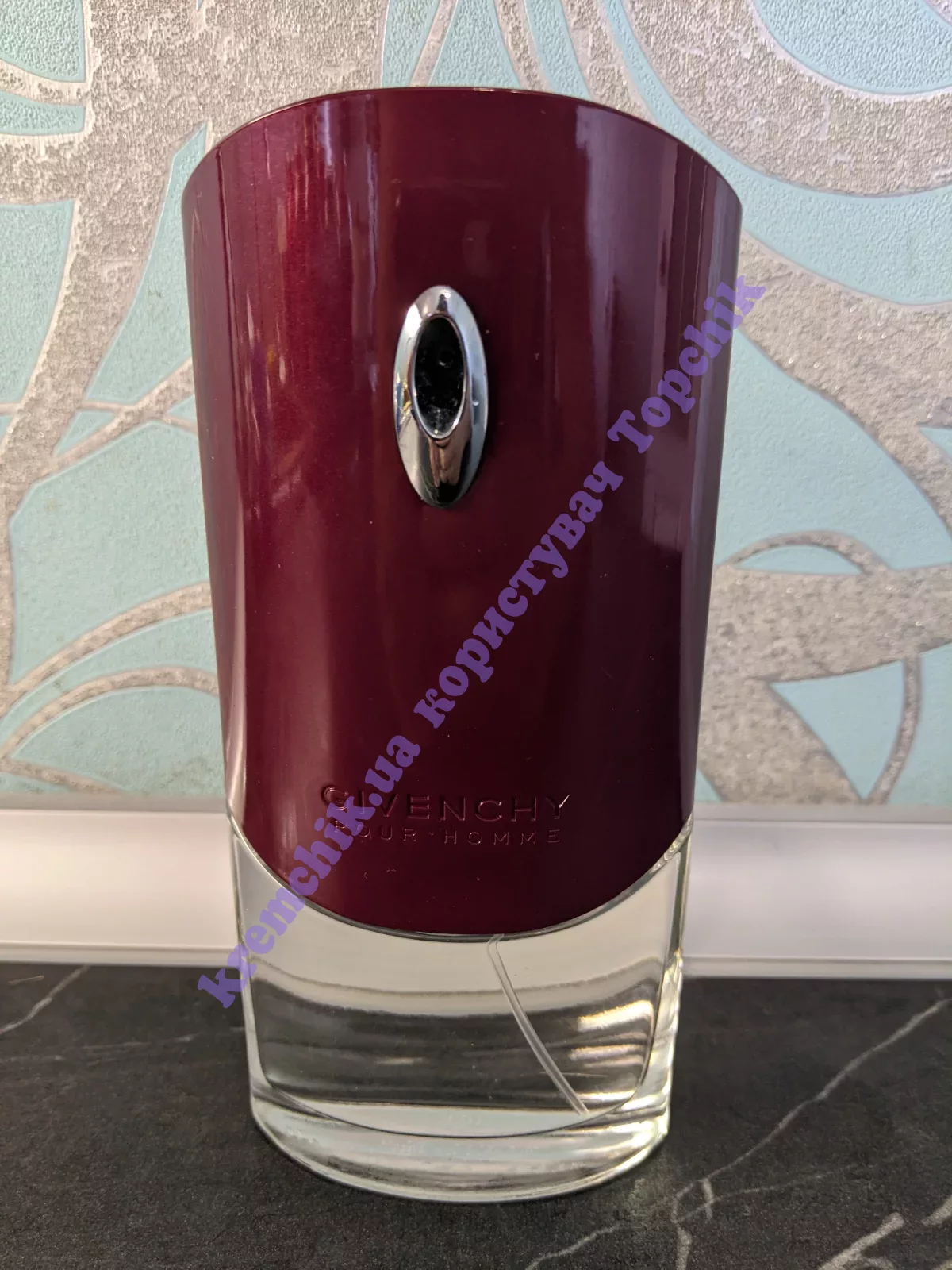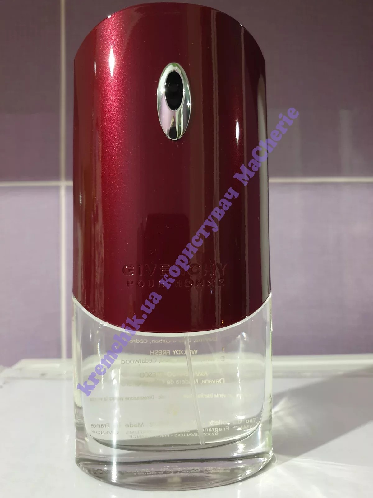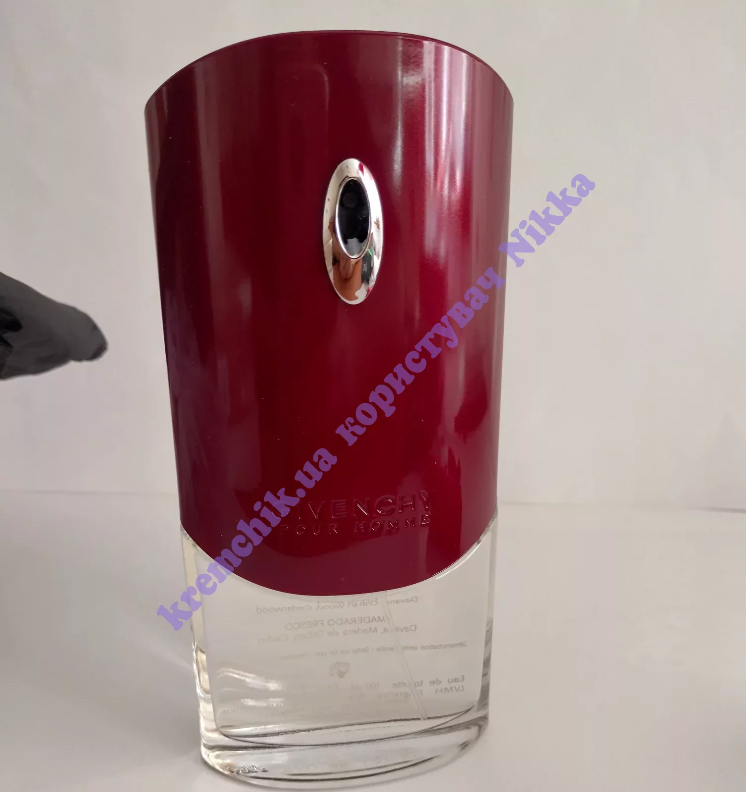 Для Givenchy Pour Homme дизайнер компании Пабло Рейнозо разработал флакон, напоминающий аэродинамический кузов гоночного автомобиля. Корпус флакона окрашен в бордовый металлический цвет по технологии, заимствованной у автомобильной промышленности.