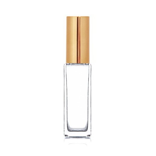 Стеклянный флакон прямоугольной формы, с металлическим распылителем разных цветов объемом 35мл