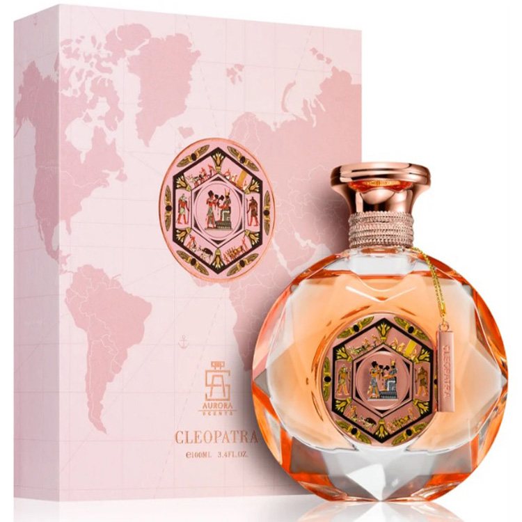 Чувственный эликсир Cleopatra от Aurora Scents адресован поклонницам ориентальной классики. Аромат издан арабским брендом в составе коллекции, посвященной Древнему Египту. Шикарный хрустальный флакон дополнен золотистыми рисунками в стиле египетских пирамид. Стильная упаковка декорирована картой мира.