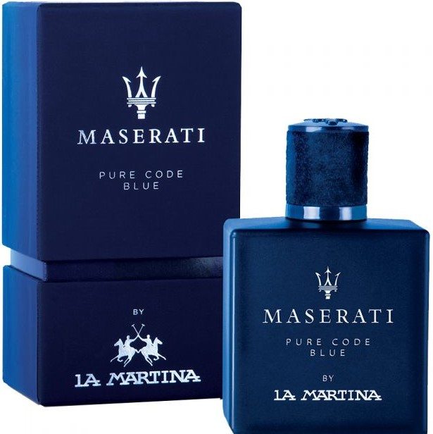 Maserati Pure Code Blue — яркий, освежающий и бодрящий мужской древесно-пряный аромат, окутанный свежестью морских брызг и цитрусовых нот. Парфюм выпущен аргентинскими брендом спортивной одежды La Martina в лаконичном прямоугольном флаконе глубокого кобальтового цвета, подчеркивающем свежесть заключенного в нем аромата.