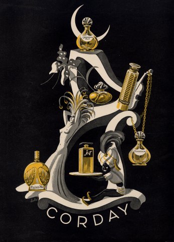 На этом постере 1946 года выпуска мы видим все парфюмы, каждый из которых имеет свою мелодию в «Perfume set to music» - я рассказывала об этом музыкальном проекте Гарри Ревела в моей предыдущей статье, посвящённой дому Corday.